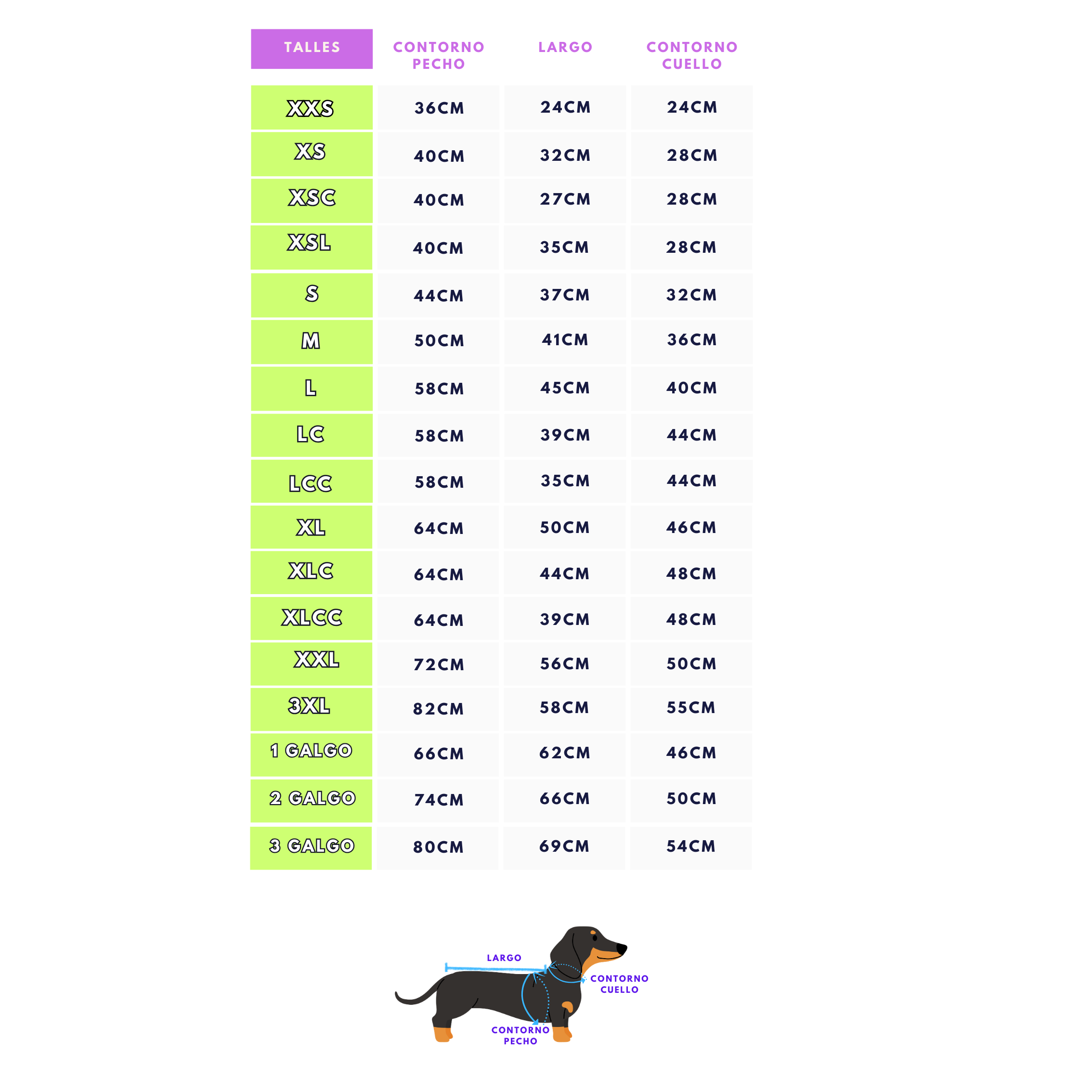 Perro Salchicha mini, Caniche toy y Yorkshire: Talles XS, XSL y S